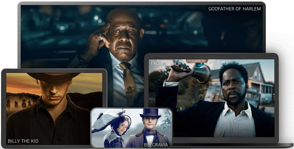 On MGM+, you can watch the exclusive Emmy award-winning series Godfather of Harlem, as well as highly-rated horror shows like FROM and Chapelwaite, based on a Stephen King novel. Other originals include Western adventure series Billy the Kid, sci-fi show War of the Worlds, crime thriller Hotel Cocaine, comedy series American Classic, historical dramas like Domina and Belgravia, and many other dramatic series like The Winter King, A Spy Among Friends, Rogue Heroes, and Beacon 23.