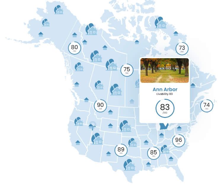 Each factor gets a letter grade from A to F, and overall livability scores range from 0 to 100, with 100 being the best.