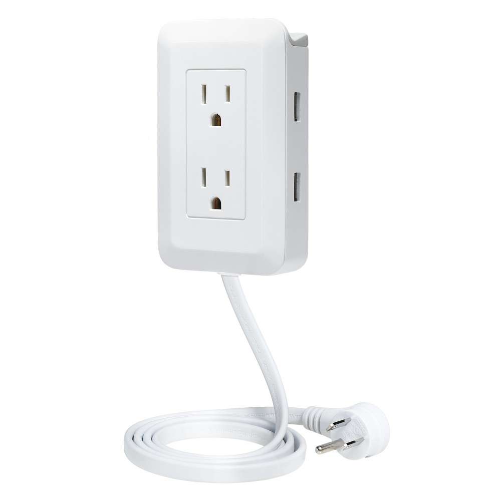 This means you can put one next to your bed, by your desk, within easy reach of the kitchen counter—wherever you need additional power outlets. Each outlet has two AC outlets and two USB outlets along with a built-in shelf for your smartphone.