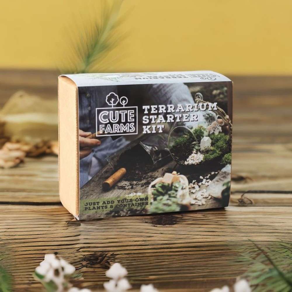| Cute Farms Terrarium Kit | $39 | Includes moss, soil, plant food, miniature figurines | Homeowners who love plants or unique decorations | Add your own glass container for a personalized look |
