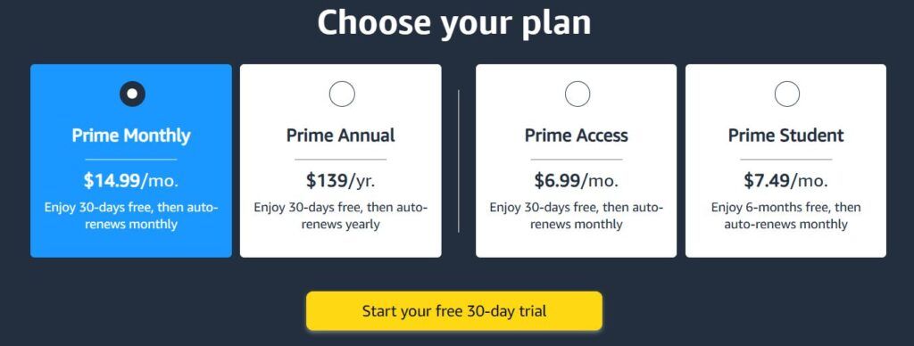 On the other hand, if you only make a few purchases a year through Amazon and prefer to use other platforms for streaming, the price you pay for a yearly membership likely won’t outweigh the benefits. If you’re curious about Amazon Prime but don’t want to commit, you can try it for 30 days for free. The free trial gives you full access to all services, so you have nothing to lose if you ultimately feel it’s not worth it.