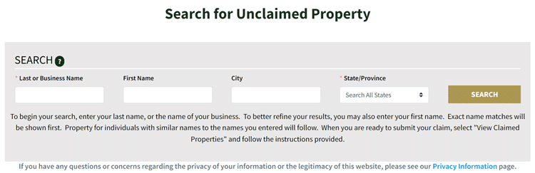 The service works by connecting to state and provincial government databases to help people find unclaimed property.