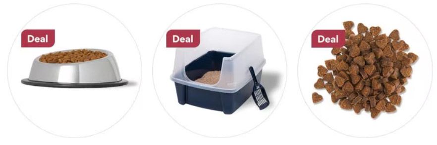 Chewy’s daily deals section is the first place you should stop when you visit the site. These deals change frequently and offer discounted items for every type of pet, from cats to horses. Chewy frequently offers free gift cards when you spend a certain amount, like a $30 gift card for a $100 purchase, giving you free cash to use on a future order of pet supplies. You’ll also find deals under $15, toys and snacks for under $5, discounted dry and wet food, and special Autoship order pricing.