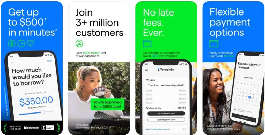 Possible Finance offers cash advances, credit cards, and short-term loans, giving borrowers multiple loan options to meet their financial needs. Their cash advances have a $500 limit with no credit checks or penalty fees, and borrowers can pay in installments over time. Possible Finance does report payments to the credit bureaus, so it’s a great opportunity to increase your score with responsible repayment.