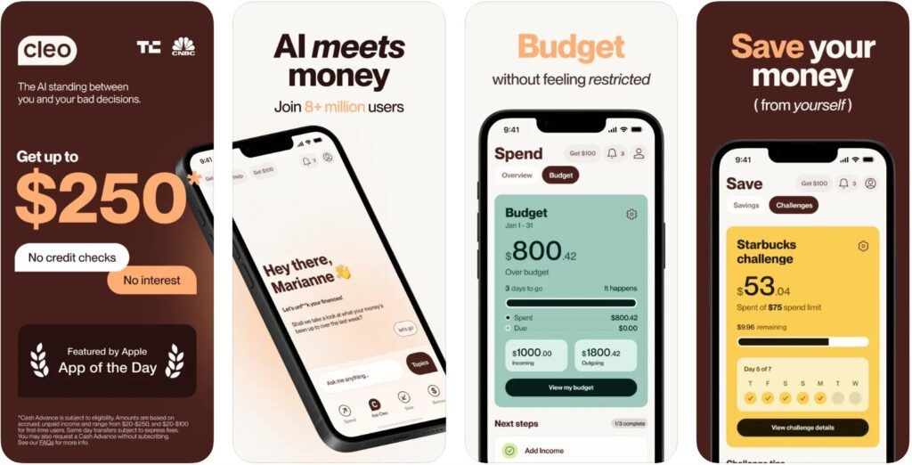 Cleo is a clever AI bot that helps you save money by sending you motivating reminders to stay on track. The app offers credit cards, budgeting tools, and cash advances with no credit checks to help users improve their financial health. It’s also one of the only Dave alternatives that works with gig workers and freelancers, providing flexible financial solutions to those with irregular income.