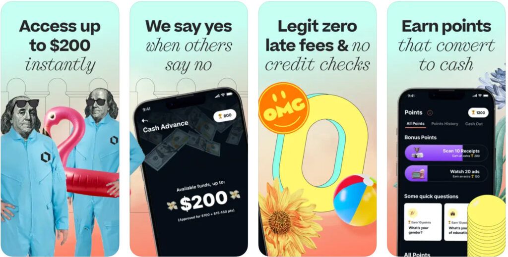 While there are no mandatory fees or interest charges, there is a fee for instant cash deposits. After signing up, users can complete surveys and watch ads to access larger cash advances or use their points to enter Klover’s $100 daily sweepstakes.