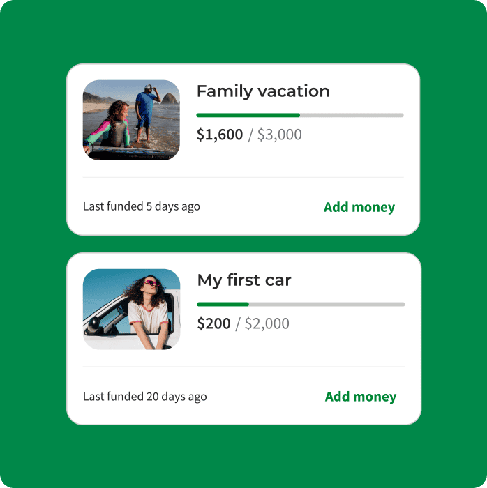 The Dave Goal Account is a high-yield savings account designed to help fund a goal (for example, a down payment, family vacation, or future emergency.) Users can set up one-time or recurring transfers from their Dave Spending account or an external bank account to save up for their goal.